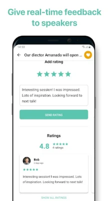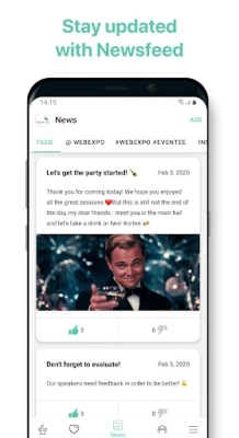 Men Eventee handler om mere end blot planlægning. Det er en dynamisk platform designet til at styrke engagement og lette meningsfulde forbindelser. Deltag aktivt ved at stille spørgsmål og dele dine tanker direkte med foredragsholdere, og giv øjeblikkelig feedback, der bidrager til den samlede oplevelse. Gennem den indbyggede chatfunktion kan du uden besvær arrangere møder og netværke med andre deltagere, hvilket åbner dørene for nye samarbejder og inspirerende dialoger. Hold dig desuden løbende opdateret med de seneste nyheder og ændringer via det intuitive nyhedsfeed, så du altid er et skridt foran.