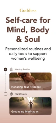 Forvandl dine daglige rutiner til hellige øjeblikke med selvomsorg og dyb indre heling. Goddess er en app designet til kvinder, der søger en dybere forbindelse til deres velbefindende og spiritualitet. Begynd på en berigende rejse mod selvopdagelse og empowerment, hvor ældgammel visdom møder moderne mindfulness og adfærdsvidenskab. Udforsk kraften i guidede meditationer, revitaliserende yoga og bevidste åndedrætsteknikker, alt sammen skabt for at nære din krop, dit sind og din sjæl. Goddess er din ledsager mod indre ro og en stærkere følelse af selvværd.