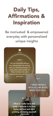 Goddess er din alt-i-én platform for holistisk kvindesundhed. Fra forståelsen af menstruationscyklusser til opnåelse af hormonel balance tilbyder appen vejledning og ressourcer, der støtter dig på din unikke feminine vej. Genprogrammer dit underbevidste med daglige affirmationer og specifikke feminine tips, designet til at prioritere selvomsorg og styrke feminine dyder. Goddess er mere end blot en app; det er en spirituel ledsager og en selvplejecoach, der bemyndiger dig til at vække den gudinde, der bor i dig. Omfavn en verden af velvære og transformation, hvor din indre styrke og skønhed får lov at blomstre.