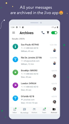 Oplev fuld fleksibilitet med JivoChat på farten. Vores mobile løsning bringer alle de essentielle funktioner direkte til din håndflade, så du aldrig går glip af en salgsmulighed. Fra hurtige svar med fælles frase-biblioteker og muligheden for filoverførsler, til overvågning af besøgende og nem adgang til beskedarkiver. Du kan endda nemt chatte med kolleger og opsætte påmindelser for at sikre, at ingen henvendelse falder mellem stolene. Mere end 270.000 onlinevirksomheder stoler allerede på JivoChat til at forbedre deres kundedialog og drive vækst med en gratis, men komplet kommunikationsløsning.