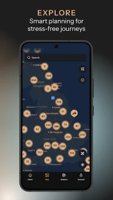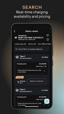 Slut med usikkerhed og spildtid. ONEEV giver dig øjeblikkelig adgang til realtidsinformation om ladestandernes tilgængelighed og priser, så du altid kan finde den rette løsning uden gætværk. Forestil dig at kunne planlægge din rute og samtidig identificere optimale ladestop langs vejen, hvilket sikrer en problemfri fortsættelse af din rejse. Den integrerede betalingsløsning gør processen nem og sikker; betal direkte i appen uden behov for eksterne kort eller skift mellem platforme. Al din opladningshistorik og kvitteringer er samlet og let tilgængelige lige ved hånden i ONEEV.