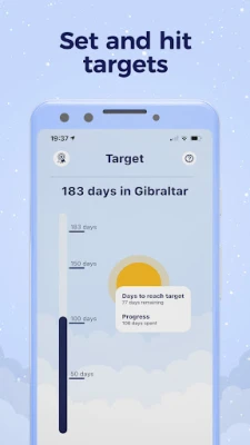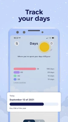 Med Ovrnite bliver det en leg at registrere dine opholdsdage. Appens intuitive design tilbyder en detaljeret jurisdiktionslog, der overskueligt præsenterer dine dage, nætter og en samlet oversigt på separate skærme. Sæt skræddersyede mål og undgå at overskride eller undergå vigtige tærskler for din skattemæssige bopæl. De intelligente regler for definition af "dage" og "nætter" indstilles automatisk baseret på din valgte jurisdiktion, hvilket eliminerer manuel indtastning og frigør din tid til det, der virkelig betyder noget.