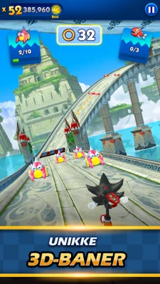 Oplev en hæsblæsende rejse med Sonic Dash, SEGA's banebrydende endeløse løbeeventyr, der genopfinder farten på mobil! Træd ind i rollen som den legendariske Sonic the Hedgehog, og sus gennem betagende 3D-landskaber, hvor hver sprint, hvert hop og hver snurrebevægelse tæller. Dette er ikke bare et spil; det er en adrenalinfyldt test af dine reflekser, hvor du ubesværet skal navigere over og under forhindringer i et non-stop kapløb mod uret og omgivelserne. Forbered dig på en uforglemmelig oplevelse, der fanger essensen af Sonics ikoniske hastighed og charme.